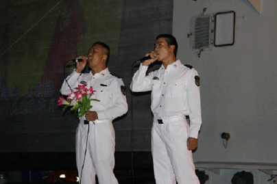晚會(huì)首先在慷慨激昂的詩(shī)朗誦中拉開(kāi)了序幕,“?凇迸炛笓]組成員在詩(shī)朗誦中回顧了護(hù)航以來(lái)的點(diǎn)點(diǎn)滴滴,贊頌護(hù)航官兵日夜值勤、戰(zhàn)風(fēng)斗浪、不僅贏得了被護(hù)商船船員的交口稱贊,也贏得了外軍的廣泛尊重。