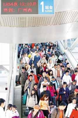 據(jù)向站長介紹,春節(jié)過后,昆明發(fā)往廣州、廈門、上海、重慶等城市的列車就特別擁擠,其中尤以外出務(wù)工人員居多。去年11月份,從廣州、東皖回昆的返鄉(xiāng)農(nóng)民工客流量非常大,但兩個月過去了,依然還是有大批的人涌向省外務(wù)工。同時,由于今年春節(jié)期間氣候好,昆明站列車到站的正點率比較高,完善的服務(wù)也保證了廣大乘客能夠及時出行。 (記者李嚴(yán)) (昆明日報)