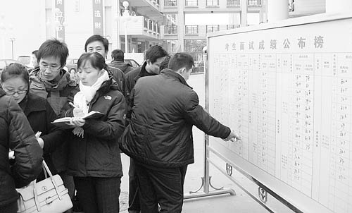 孫靚靚等20名女青年報(bào)名競聘,她們中有團(tuán)江蘇省委的主任科員、副主任科員,泰州市委辦公室和泰州市財(cái)政局的副主任科員,泰州市高港區(qū)組織部干部教育科干部等。12月14日,她們和其他應(yīng)試者一起參加了筆試;12月16日公布的筆試成績,孫靚靚名列相同職位的第五名;12月27日,孫等進(jìn)入面試;12月30日公開選拔領(lǐng)導(dǎo)干部綜合成績出爐,孫的綜合成績躍居相同職位的第一名,進(jìn)入體檢等程序。