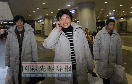 2月25日上午10點(diǎn),剛抵達(dá)北京首都國際機(jī)場,這位獲救中國船員做的第一件事就是打電話給爸媽報平安,站在他身邊的是另外兩位獲救船員劉峰、宋進(jìn)。短暫的停留后,三位歸心似箭的山東老鄉(xiāng)又搭上飛往青島的航班。