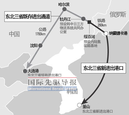 這是東北最大最繁忙的航線。韓國《朝鮮日報》近日報道,中國、韓國和俄羅斯正聯(lián)手構(gòu)建新的“中韓俄三角物流系統(tǒng)”。一座20萬平方米的內(nèi)陸集裝箱貨場將在黑龍江省綏芬河市落成,中國北方的進(jìn)出口貨物將悉數(shù)集中在這里,然后用鐵路運(yùn)往俄羅斯納霍德卡港,通過海運(yùn)運(yùn)到韓國釜山港。