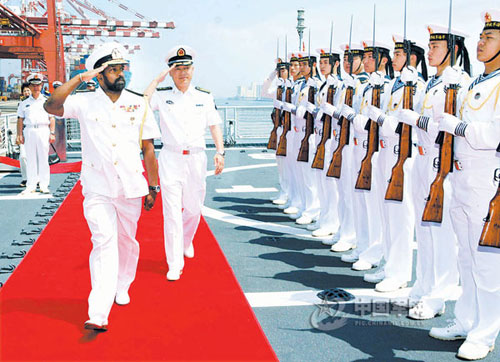 赴巴基斯坦參加“和平-09”海上多國聯(lián)合軍事演習(xí)的“廣州”號導(dǎo)彈驅(qū)逐艦今天停靠斯里蘭卡科倫坡港,進行第二次補給。