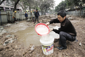 昨日下午2點左右,河運校車站紅綠燈旁施工處,一直徑為400毫米的主水管爆裂,自來水迅速蔓延至路中間,行人、車輛無法正常通行,交警迅速到現場維持秩序。該水管用于大坪至石橋鋪沿線住戶供水,約10萬居民停水,自來水流失500~600噸,預計今日上午可恢復供水。自來水公司負責人分析,爆管原因可能與周圍泥土下降有關。