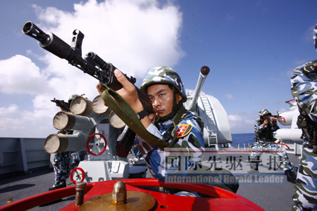 楊毅:“擱置爭(zhēng)議、共同開(kāi)發(fā)”有一個(gè)前提,就是“主權(quán)歸我”,這意味著,中國(guó)在領(lǐng)土完整和主權(quán)獨(dú)立方面的原則立場(chǎng)是堅(jiān)定的,也是不能妥協(xié)的。一些國(guó)家的政客認(rèn)為中國(guó)追求和平發(fā)展,顧及國(guó)際形象,不敢過(guò)度反應(yīng),于是不斷試探侵蝕中國(guó)的國(guó)家利益,認(rèn)為中國(guó)軟弱可欺,這種看法和做法是十分危險(xiǎn)的。中國(guó)主張通過(guò)外交手段、友好協(xié)商解決領(lǐng)土紛爭(zhēng),即使暫時(shí)解決不了也不要惡化局勢(shì)。如果動(dòng)輒使用武力,不但解決不了根本問(wèn)題,還會(huì)激化矛盾。但是,強(qiáng)大的軍事力量是維護(hù)國(guó)家利益的后盾,中國(guó)海軍是防止其他國(guó)家肆無(wú)忌憚侵蝕中國(guó)海上利益的強(qiáng)大威懾力量。