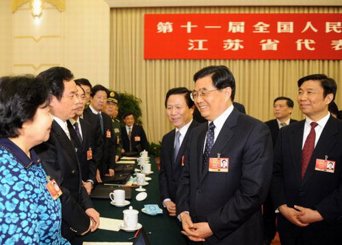 胡錦濤當(dāng)天下午來(lái)到他所在的江蘇代表團(tuán),在聽(tīng)取了九位代表的發(fā)言后,胡錦濤表示,當(dāng)前的國(guó)際國(guó)內(nèi)形勢(shì)可以用兩句話來(lái)概括,一句話是挑戰(zhàn)確實(shí)嚴(yán)峻,再一句話是機(jī)遇依然存在。要進(jìn)一步落實(shí)中央宏觀調(diào)控政策措施,切實(shí)做好擴(kuò)內(nèi)需、保增長(zhǎng),調(diào)結(jié)構(gòu)、上水平,抓改革、增活力各項(xiàng)工作,在應(yīng)對(duì)挑戰(zhàn)中開(kāi)創(chuàng)新局面,在克服困難中實(shí)現(xiàn)新發(fā)展。