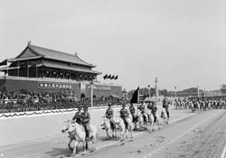 烏嫩齊:接受檢閱的騎兵部隊都是精選出來的精銳,比如開國大典中受閱的察哈爾軍區(qū)騎兵第3師,創(chuàng)建于1932年,參加過開創(chuàng)陜甘寧革命根據(jù)地斗爭,解放戰(zhàn)爭中參加了遼沈、淮海、平津戰(zhàn)役。他們接受檢閱,“刷刷刷”地走過天安門,神氣啊。真是打仗有打仗的本事,受閱有受閱的樣兒。