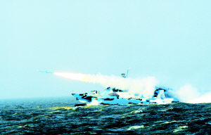 “嗖”的一聲巨響,艦艇輕微地抖動(dòng),官兵們心里“噔噔”直跳。導(dǎo)彈拖著長長的尾焰向遠(yuǎn)海飛去。首發(fā)命中!