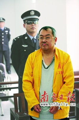 昨天下午,來自全國各地的記者又把法庭圍得水泄不通。這一幕,和2006年12月的庭審時一樣。不同的是,當時法庭內(nèi)的顧雛軍,理直氣壯,拿著幾十頁的辯護詞演講似的自辯,否認所有的控罪。而這一刻的顧雛軍,靜靜地聽著法官宣讀108頁的判決書,神情自然,沒有言語(如圖,劉曉哲攝)。當審判長敲下法槌宣布“駁回上訴,維持原判”時,穿著黃色囚服的顧雛軍皺了一下眉頭。似乎這一切,他早有心理準備。