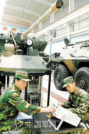戰(zhàn)車上,戰(zhàn)士們正在細(xì)心地檢查每一部件,特別是對裝甲戰(zhàn)車的油路、電路和發(fā)動機等關(guān)鍵部位進行反復(fù)調(diào)試。旁邊的一塊小黑板上,貼著一張記錄每臺戰(zhàn)車性能指標(biāo)和保養(yǎng)重點的表格。戰(zhàn)士白勝告訴記者:“別看是所有戰(zhàn)車同時保養(yǎng),要是哪臺車沒能達到保養(yǎng)規(guī)定要求,攝影頭會立即把信息反饋給保養(yǎng)綜合信息平臺!
