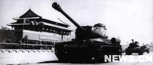 隨后,騎兵部隊(duì)過來了。在騎兵部隊(duì)的后面,防空部隊(duì)過來了,牽引炮兵部隊(duì)過來了,摩托化步兵過來了,裝甲兵部隊(duì)過來了。他們操縱著全世界第一流的武器。各種口徑的大炮和各種輕重型坦克,構(gòu)成一個鋼鐵的巨流,在檢閱臺前走過。