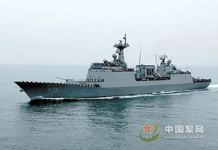 去年,韓國海軍60周年活動,中國派遣了國產(chǎn)導(dǎo)彈驅(qū)逐艦“哈爾濱”號。今年,中國海軍慶祝60周年,韓國也派出了新一代國產(chǎn)導(dǎo)彈驅(qū)逐艦“姜邯贊”號。該艦2007年正式交付使用,是以高麗名將姜邯贊將軍的名字命名的。