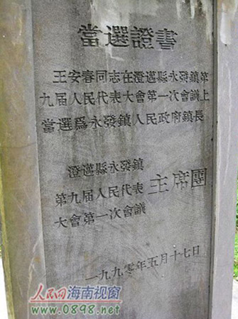 采訪中,記者聯(lián)系遵譚鎮(zhèn)委核實(shí)王安春的身份。遵譚鎮(zhèn)委辦公室的負(fù)責(zé)人告訴記者,王安春確實(shí)在澄邁永發(fā)鎮(zhèn)當(dāng)過鎮(zhèn)長,后來還在該縣農(nóng)業(yè)局就任副局長,在儒友村修造的活人墓,正是王安春所為。