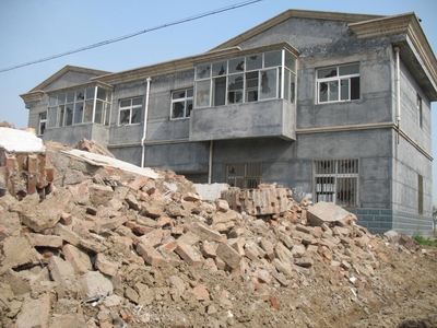 農(nóng)場工人楊洪林告訴記者,2006年2月,他和60余戶十八隊(duì)的拆遷戶,一起被安置到二隊(duì)居住。蓋房前,農(nóng)管委拆遷工作組的工作人員曾發(fā)出通知,說安置地上要蓋別墅,每平方米750元,想要的報(bào)個(gè)名,很多人都積極響應(yīng)!昂髞碚f別墅要改建成歐式風(fēng)格,價(jià)錢漲至1000多元,大伙還是愿意買,可別墅蓋成后卻沒有公開銷售的音信了。后來才知道,這些別墅落到當(dāng)官兒的手里,沒有一套是我們的!睏詈榱终f。