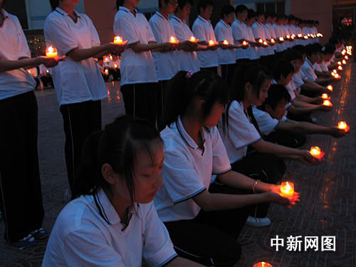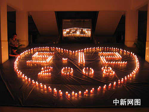 中新網(wǎng)隴南5月12日電 (記者 劉薛梅 張通飛) 11日晚上8點(diǎn),隴南市第二中學(xué)校園內(nèi),660名學(xué)生點(diǎn)燃蠟燭組成了一個“燭光大道”,校門正前方的多媒體教室內(nèi),300支蠟燭構(gòu)成了一個巨大的心形圖案,里面用蠟燭寫著“512”、“2008”。這里正在舉行一場詩歌朗誦會,紀(jì)念地震一周年。