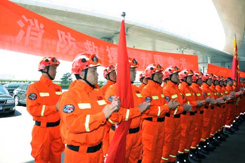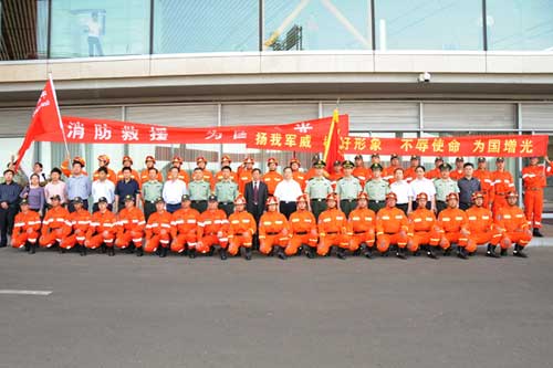 5月18日,中國消防應(yīng)急救援隊受命從北京出發(fā),赴俄羅斯參加上海合作組織“博戈羅茨克”聯(lián)合救災(zāi)演練,國家民政部副部長羅平飛、救災(zāi)司鄒銘司長,公安部消防局局長陳偉明、副局長朱力平,中國地震局趙和平副局長等有關(guān)同志到首都機場為參加演習(xí)的救援隊員,一同前往參加演習(xí)的還有中國地震國際救援隊。