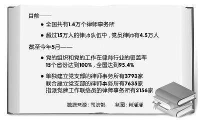 黨的十七大對包括律師行業(yè)在內的新社會組織黨建工作提出明確要求。2008年,中央組織部和司法部聯合發(fā)文,提出2009年6月實現黨的組織和黨的工作在律師行業(yè)全覆蓋的目標。