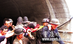 張明政,45歲,萬盛區(qū)官壩鎮(zhèn)人,供職于重慶川九建設(shè)有限公司。前日上午上早班,901組包括他共計14人,作業(yè)面位與井下垂直深度約100米的平臺,他們進行風(fēng)筒安裝接合作業(yè)。