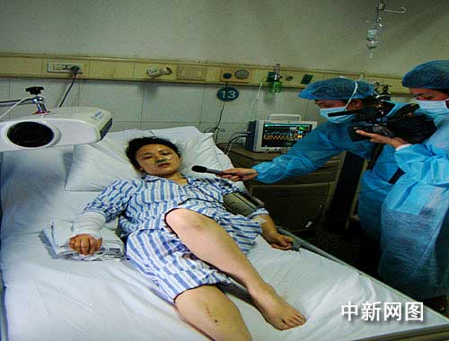 躺在病床上的谷萬芳年齡約三十歲,神情憔悴,眼睛里還存留著一絲劫后余生的驚恐和慌亂。記者看到,谷萬芳的雙上肢受傷較嚴(yán)重,右手臂上纏繞著厚厚的繃帶,左手臂也無法動彈;雙腿裸露在外的皮膚上還能看見一尺長劃傷和青紫傷痕。