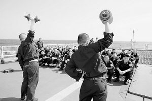 護(hù)航編隊(duì)艦艇的擴(kuò)音器、對(duì)講機(jī)里,幾乎每天都能傳出戰(zhàn)斗號(hào)角般的聲音。我們的官兵,就是在如此高度緊張的戒備氛圍中度過(guò)一百多天護(hù)航生活的。