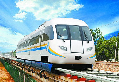 今年5月13日,國內(nèi)首列具有完全自主知識產(chǎn)權(quán)的實用型中低速磁懸浮列車在唐車公司完成組裝,順利下線,并隨即開始進(jìn)行列車調(diào)試。該車在原有工程化樣車基礎(chǔ)上進(jìn)行了大量實用化改進(jìn),整列車為3輛編組模式,由2輛結(jié)構(gòu)相同的端車和1輛中間車組成,運行時速為100至120公里,首尾車定員為每輛100人,中間車為120人,使用壽命在25年以上。該車采用鋁合金車體、寬幅車身,供電電壓由直流750伏提高到直流1500伏,噪音低、無輻射、運行安全可靠,爬坡能力達(dá)到70‰的水平,更加適合在城市復(fù)雜線路運行,并可大幅降低線路建設(shè)拆遷成本。
