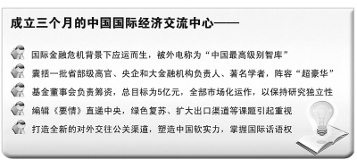 中國國際經(jīng)濟交流中心(以下簡稱“國經(jīng)中心”)正是在此背景下應(yīng)運而生,目標就是辦成民間智庫,融匯高層、權(quán)威資源,進行前瞻性、戰(zhàn)略性、全局性研究,為公共政策提供智力支撐,為企業(yè)跨國經(jīng)營提供咨詢服務(wù)。