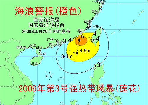 消息稱,受今年第3號(hào)強(qiáng)熱帶風(fēng)暴“蓮花”的影響,預(yù)計(jì)20日夜間到21日白天,南海東北部、臺(tái)灣海峽南部將出現(xiàn)5到6米的巨浪到狂浪區(qū);臺(tái)灣海峽北部將出現(xiàn)3到4米的大浪到巨浪區(qū)。廣東省東部、福建省南部沿海將出現(xiàn)3.5到4.5米的大浪到巨浪。