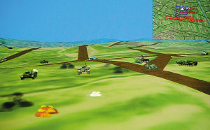 “我們正在組織官兵利用戰(zhàn)術(shù)對抗模擬訓(xùn)練系統(tǒng)開展訓(xùn)練!甭瞄L趙立榮告訴記者。為改進(jìn)裝甲分隊(duì)?wèi)?zhàn)術(shù)訓(xùn)練手段,提高按綱施訓(xùn)質(zhì)量,該旅與石家莊機(jī)械化步兵學(xué)院聯(lián)合開發(fā)了全軍首家裝甲步兵戰(zhàn)術(shù)對抗模擬訓(xùn)練系統(tǒng)!霸撥浖到y(tǒng)是以構(gòu)建1∶1000的戰(zhàn)場地形環(huán)境和車輛、人員模型為基礎(chǔ),所有參訓(xùn)人員在三維虛擬戰(zhàn)場上訓(xùn)練,其所聽、所見均與實(shí)車在現(xiàn)地作戰(zhàn)時(shí)一樣!