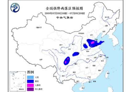 中新網(wǎng)7月8日電 中央氣象臺8日06時發(fā)布暴雨橙色警報:預(yù)計,今天白天到夜間,川西高原東部和四川盆地西部、陜西南部、山西南部、河北南部、山東中北部和山東半島等地有 暴雨,其中,四川盆地西部、河北東南部、山東北部部分地區(qū)有大暴雨。