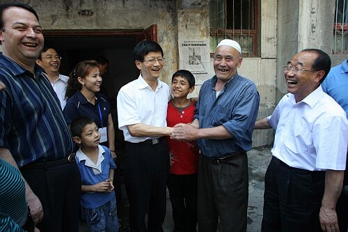 烏魯木齊市天山區(qū)團結西社區(qū)是一個維吾爾、哈薩克、蒙古和漢族等多民族和睦相處的社區(qū)。孟建柱先后來到鄒德敬和巴合提亞爾等居民家中走訪看望,并與在樓前樹陰下乘涼的社區(qū)居民談心,了解他們的生活狀況,傾聽他們的心聲,面對面地講道理、做工作。社區(qū)群眾真情訴說在美麗富饒的新疆各族人民和睦相處、共同發(fā)展的樁樁事例,紛紛聲討民族分裂分子的無恥行徑,強烈要求嚴懲兇手,維護幸福安康的生活。