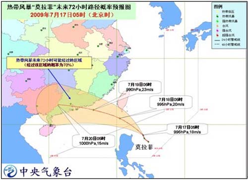 中新網(wǎng)7月17日電 據(jù)中國(guó)氣象局網(wǎng)站消息,7月16日晚,菲律賓呂宋島以東洋面的熱帶低壓加強(qiáng)為今年第6號(hào)熱帶風(fēng)暴“莫拉菲”(MOLAVE)。
