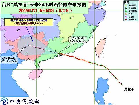 受“莫拉菲”及其外圍云系的影響,19日白天到夜間,南海北部海面、廣東西部沿海及珠江三角洲將有6-8級大風,部分海域或地區(qū)風力有9-10級;廣東西部、廣西中南部以及云南東南部等地有暴雨,其中,廣東西部和廣西中南部的部分地區(qū)有大暴雨。