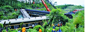 經(jīng)初步調(diào)查認(rèn)定,列車(chē)脫軌原因是由于連日持續(xù)強(qiáng)降雨造成山體崩塌掩埋鐵軌所致。