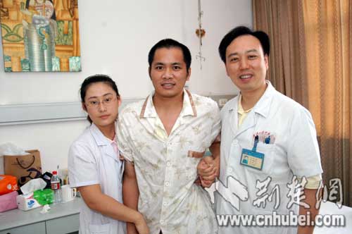 4日,在中南醫(yī)院綜合醫(yī)療科19樓病房,窗外是優(yōu)美的湖光山色,窗內(nèi)是譚紀雄燦爛的笑容。譚紀雄一邊接受按摩治療,一邊和醫(yī)生愉快交談,言語風(fēng)趣,表述順暢,和正常人幾乎沒有兩樣。