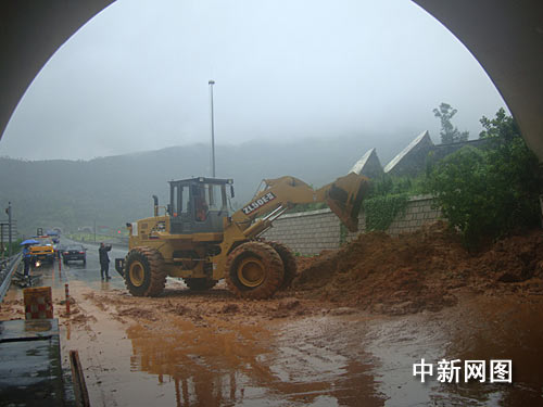 8月9日中午12點(diǎn)30分許,位于福建方向三都嶺隧道北洞口上方,由于山上大量雨水聚集形成的小型山洪的沖刷,導(dǎo)致將近30平方的泥石流順著山洪沖到了高速公路上,造成慢車道和部分快車道上泥石成堆,通行嚴(yán)重受阻,高速交警立即在福建方向的躺下出口實(shí)施封道分流,過往車輛繞行國(guó)道。(完)