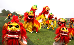 曾在北京奧運會開幕式前文藝表演中第一個登臺亮相的滄州劉吉舞獅團,此次又將在國慶聯(lián)歡晚會上登臺獻藝。記者獲悉,從7月初接到任務(wù),劉吉舞獅團就加緊訓練。最后確定以大型獅子舞“騰飛中國”進京表演。日前,舞獅團已經(jīng)進京按照張藝謀總導演的指揮進行統(tǒng)一彩排。