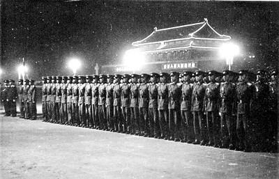受檢的時刻終于來臨。1958年9月30日下午,我們“湘軍方隊”停止了訓(xùn)練,轉(zhuǎn)入受閱時的著裝和衛(wèi)生準備,熨衣服、擦皮鞋、縫襯肩、釘領(lǐng)花、安肩章、洗澡、理發(fā)、刮胡須忙個不停。下午5時,大家都穿上受閱著裝列隊檢查,全隊人員配帶的肩花都是中尉或上尉,這些平時曬得黑油油顯得有些老成粗放的“老兵”,一下子變得年青、標致、威武了;在激動心情的催促和新式著裝的反光照耀下,每個人的臉面變得白中帶紅、可親可愛了。