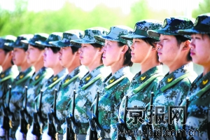 在女民兵方隊,隊員們訓練歸來最愛開的一個玩笑,便是撩開“劉海兒”,欣賞各自腦門上那道黑白分明皮膚,互相打趣:“咱們可以給美白護膚產(chǎn)品作‘活廣告了’!