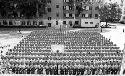 在每次大的集體演練前,師生們都要面對學(xué)校珍藏的曾經(jīng)在天安門廣場高高飄揚(yáng)的五星紅旗高唱國歌,莊嚴(yán)宣誓。此外,學(xué)校利用誓師大會、動員會、表彰會對學(xué)生加以正確引導(dǎo);利用家長會、校通訊平臺爭取家長的理解與配合;組織學(xué)生集體觀看電影《大閱兵》,給學(xué)生以精神支持;讓學(xué)生每天記錄訓(xùn)練日記,留給學(xué)生難得的人生財富……“祖國就在我心中”、“我與祖國共奮進(jìn)”成為了艱苦訓(xùn)練過程中學(xué)生發(fā)自心底的吶喊。