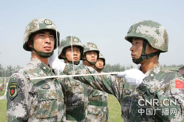 “向右擺頭45度,帽檐前緣與眉同高。”“兩腳分開60度,向前踢腿時,腳掌距離地面60厘米!薄跋蛴铱吹降卓词裁吹胤健边@組看起來枯燥乏味的數(shù)字 、簡單易學的動作,卻并不容易精確掌握做到,并直接影響著閱兵訓練的全局(方隊的整齊一致)。