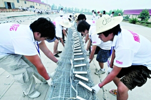折疊后還是不行,一方面太沉,整幅網(wǎng)幕重4至5噸,故分成9小塊,每塊重500公斤;另一方面不能保證煙花毫發(fā)無傷,只要車顛簸,網(wǎng)幕還是會(huì)磕碰。