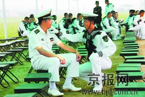 在水兵方隊(duì),何健和何煒是一對(duì)鮮為人知的父子。父親何健先后參加了國(guó)慶35周年、國(guó)慶50周年國(guó)慶首都閱兵,加上這次以水兵方隊(duì)政委的身份參加新中國(guó)成立60周年國(guó)慶首都閱兵,他已經(jīng)是第三次來(lái)到閱兵村。兒子何煒去年底參軍入伍并被挑選為水兵方隊(duì)受閱隊(duì)員。9歲時(shí),何煒因爸爸參加受閱任務(wù)無(wú)暇照顧自己,還經(jīng)?拗鴮(duì)媽媽說(shuō)“爸爸是不是不要我了”。10年后,這個(gè)非軍校不上的“犟小伙”毅然放棄上地方大學(xué)的機(jī)會(huì),不顧媽媽的勸說(shuō),參軍來(lái)到部隊(duì)。