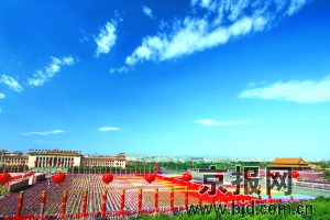不經(jīng)歷風(fēng)雨怎能見(jiàn)彩虹!似乎是對(duì)偉大祖國(guó)60年來(lái)走過(guò)的不平凡道路的真實(shí)寫(xiě)照,慶典前的天安門(mén)廣場(chǎng)在經(jīng)歷電閃雷鳴后終于撥云見(jiàn)日,迎來(lái)湛藍(lán)的天空和燦爛的陽(yáng)光。今天上午10時(shí),廣場(chǎng)上空天高云淡,日朗風(fēng)清,慶典典禮在良好的天氣條件下隆重舉行。