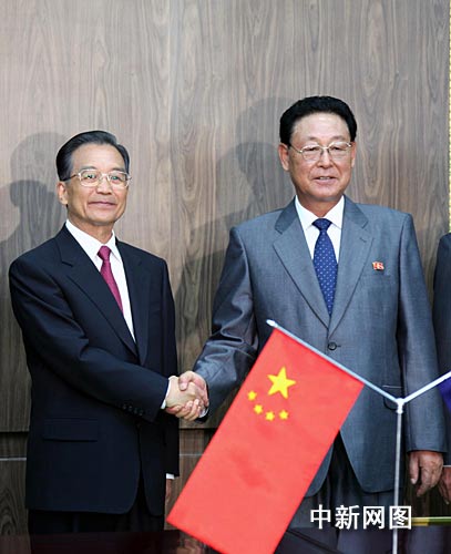 中新網(wǎng)平壤10月4日電(記者 周兆軍)中共中央政治局常委、國(guó)務(wù)院總理溫家寶四日在平壤萬(wàn)壽臺(tái)議事堂同朝鮮總理金英日舉行會(huì)談。