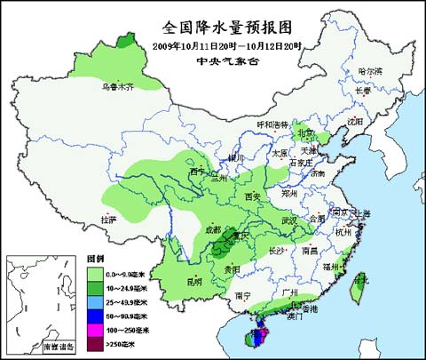 11日20時至12日20時,新疆北部、西藏東北部、青海東部和南部等地有小到中雨(雪)或雨夾雪;華北北部和西南部、西北地區(qū)東南部、江漢、江南西北部、西南地區(qū)大部、廣西東南部、廣東南部、海南、福建東部、臺灣等地有小到中雨或陣雨,其中,廣東西南部、海南大部等地有大到暴雨,海南東部的部分地區(qū)有大暴雨。甘肅東部、陜西北部、華北中南部、黃淮西部、江淮大部、江南大部等地有輕霧,其中甘肅東部、山西南部有霧。新疆北部、內(nèi)蒙古中東部、東北北部有4~6級偏北風(fēng)。受“芭瑪”和冷空氣的共同影響,南海北部和中部海域、北部灣海域?qū)⒂?-8級大風(fēng),部分海域的陣風(fēng)可達(dá)9-10級。另外,東海南部海域、臺灣海峽、臺灣以東洋面和以南海域?qū)⒂?-7級、陣風(fēng)8級的東北風(fēng)。