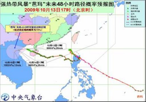“芭瑪”的中心13日17時位于北部灣中部海面,就是北緯20.3度、東經(jīng)107.9度,中心附近最大風(fēng)力有10級(28米/秒),中心最低氣壓為988百帕。