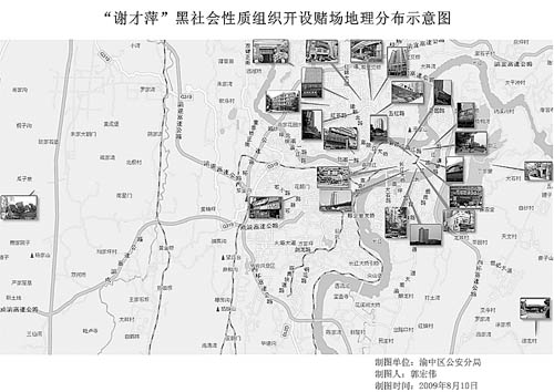 2000年開始,謝才萍利用自己特殊的家庭背景和社會關系,在渝中區(qū)四處開設賭場,聚眾賭博。