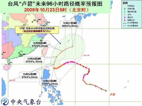 受“盧碧”和南下弱冷空氣的共同影響,23日白天至夜間,臺(tái)灣以東洋面、巴士海峽、巴林塘海峽、臺(tái)灣東南部沿海將有8-10級(jí)大風(fēng),部分海域或地區(qū)陣風(fēng)可達(dá)11-12級(jí);“盧碧”中心經(jīng)過(guò)的附近海域的風(fēng)力有11-12級(jí),陣風(fēng)可達(dá)13-14級(jí);臺(tái)灣海峽、東海南部、南海東北部、福建中部沿海也將有6-7級(jí)大風(fēng),部分海域或地區(qū)陣風(fēng)可達(dá)8-9級(jí);臺(tái)灣東北部有大到暴雨,局部有大暴雨。