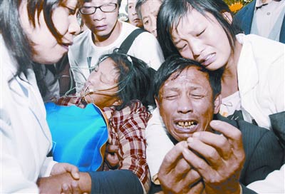 哭聲壓過了哀樂聲。陳及時的父親陳崇香、母親涂月熙,狠命的要擠向躺在花叢中的兒子,嚎啕大哭,“兒啊,你怎么走了,你怎么丟下我們走了!”此前,由于悲傷過度,涂月熙在賓館里每天輸液。現(xiàn)場,參加吊唁的人,也忍不住直抹淚,一些人甚至也放聲痛哭。