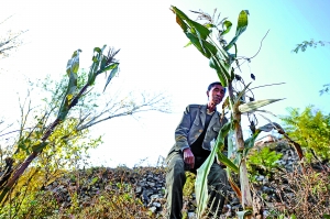 于廣海家有十三四畝地,種了一些玉米、谷子。4月份剛下種子的時(shí)候,他還覺得今年天氣不錯(cuò),應(yīng)該有雨水。但日子一天天過去,雨水沒見到,田里的谷子皮比往年厚了,黃豆連角都沒長出來,玉米的個(gè)頭也比往年矮了一半。而今年的收入也比往年減了一半。