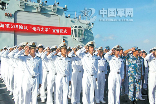 “我不是軍人,但我卻不自覺地?zé)釡I盈眶,神圣地舉起了右手宣誓!”新華社隨艦記者楊志剛?cè)缡钦f。
